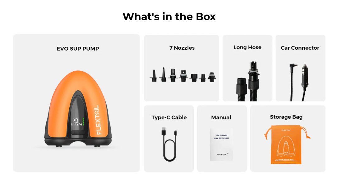 Powered either by its built-in rechargeable 8000mAh battery, or by plugging it into your car's 12V DC connector (using included car connector cable), this portable SUP pump is not only for use on SUPs but as an all-in-one cordless electric pump.