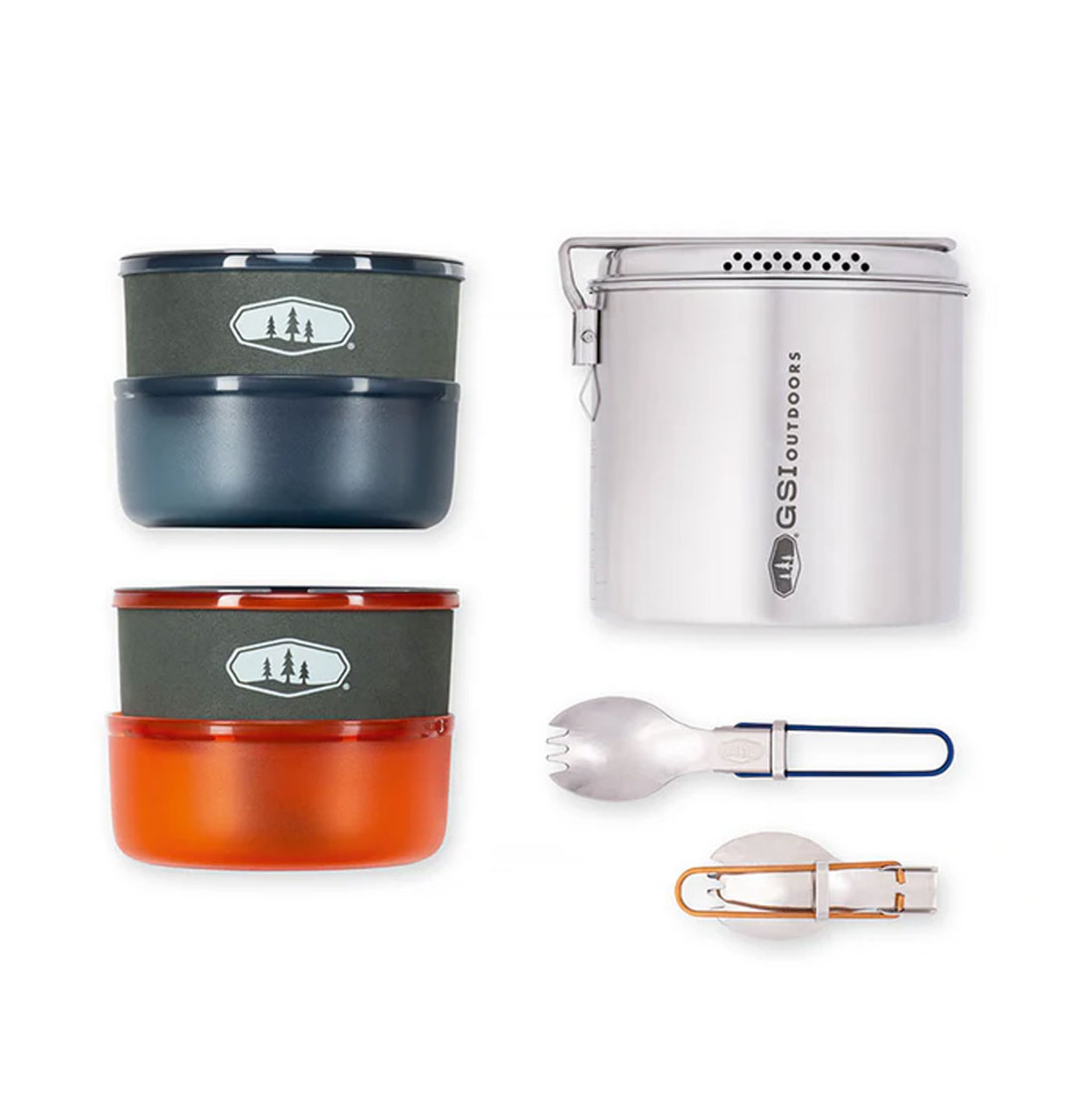 Sturdy lid made of Glacier Stainless steel helps to prevent deformation of your pot/lid and includes an integrated strainer suitable for open flame heating sources. Folding handle locks into place for cooking and secures entire set for transport. Unique nesting bowl + mug solution virtually eliminates spills while the insulating sleeve keeps drinks hot.