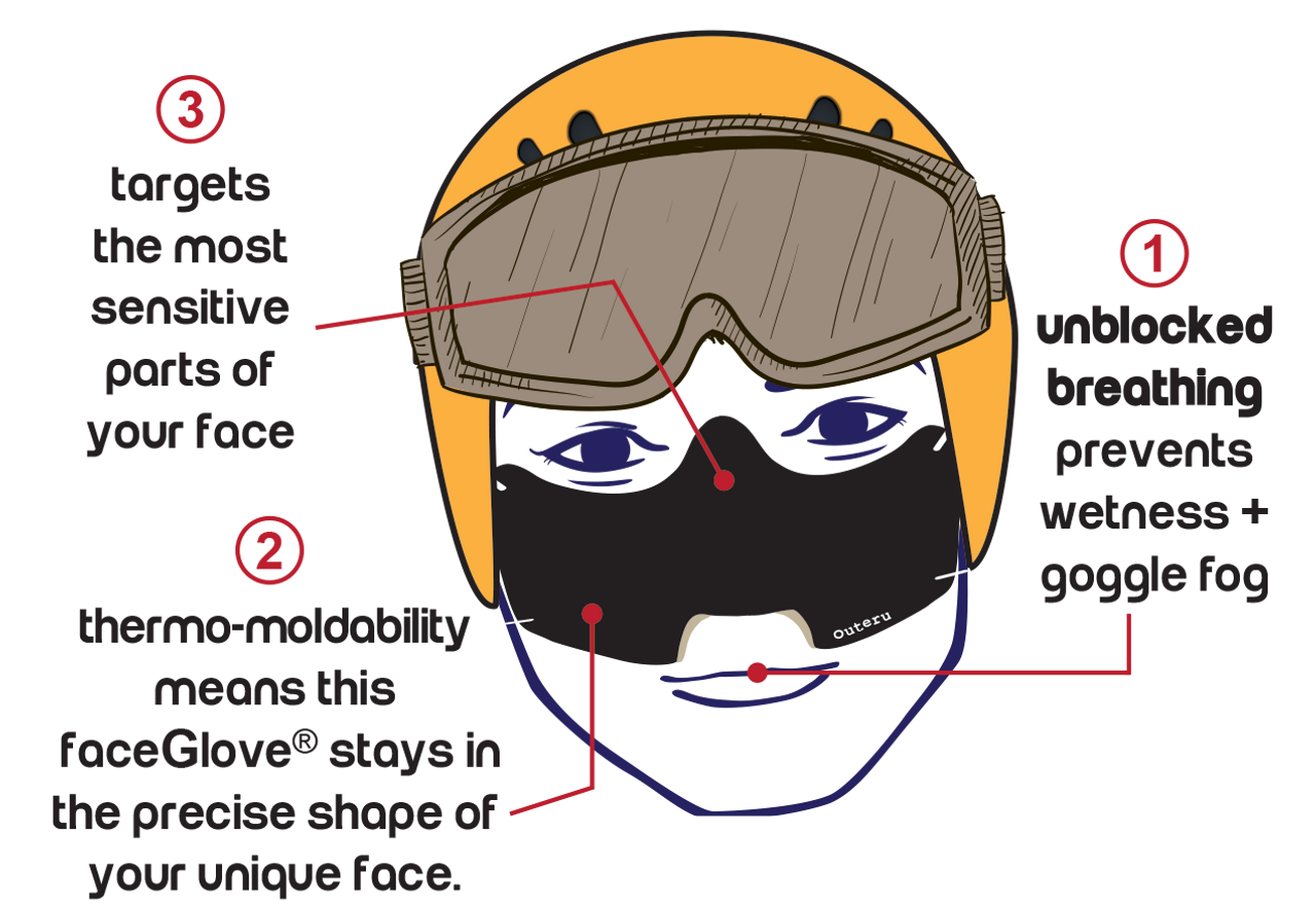 outerU's 6th production faceGlove® is made from POLARTEC's best materials, and is custom-molded to protect the most sensitive parts of your face without blocking breathing.