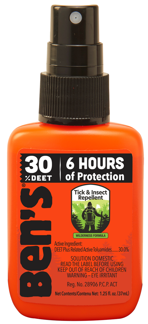 Ben's brand pump spray repellents contain DEET, the most effective tick and insect repelling ingredient ever developed. Water has replaced alcohol in Ben's 30. Water does not evaporate as quickly as alcohol, and does not open the pores, so the need to frequently reapply the repellent is reduced. Thus, Ben's 30 is an appropriate choice for protecting children as well as adults and it leaves more insect repellent on the skin so that it fights against biting insects longer.