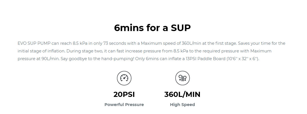 A must-have for SUP enthusiasts, it allows you to preset your desired PSI, and the EVO SUP Pump will shut off automatically when it reached the pre-set PSI. On top of that, the memory function will automatically recall the previously set pressure for the next inflation!