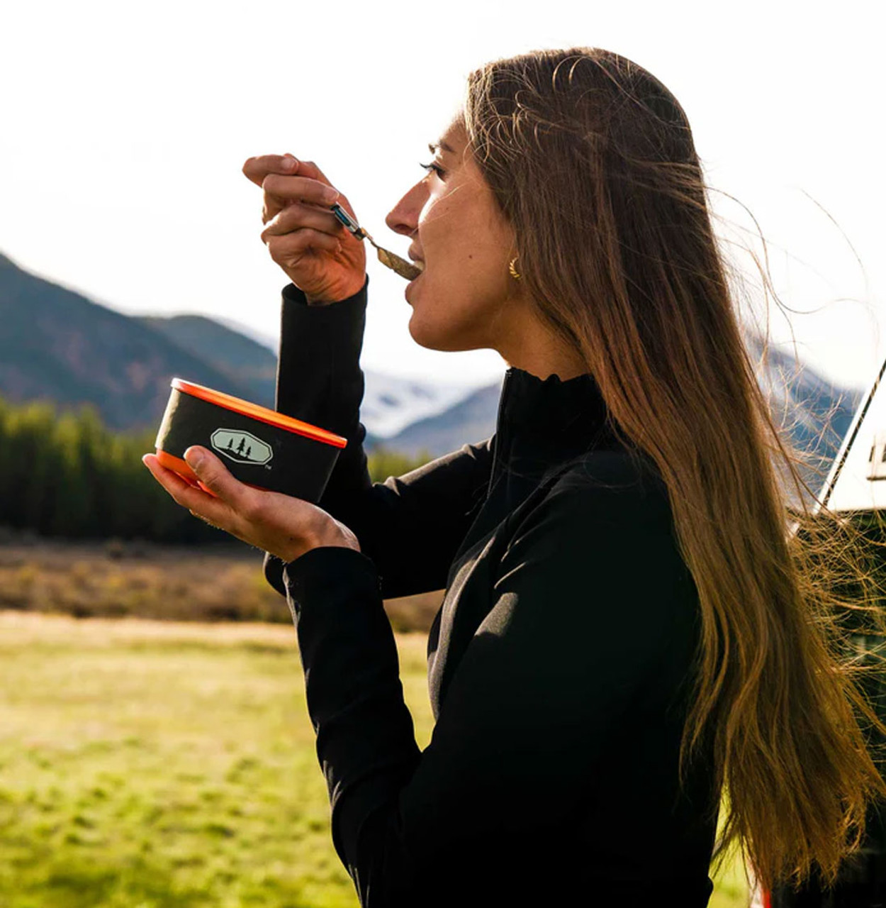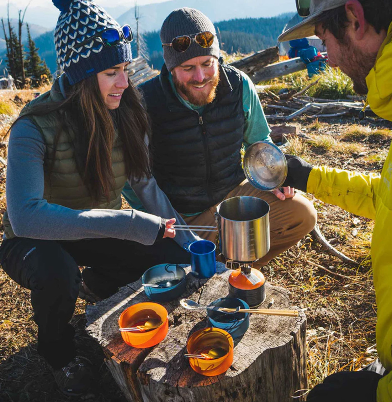 Sturdy lid made of Glacier Stainless steel helps to prevent deformation of your pot/lid and includes an integrated strainer suitable for open flame heating sources. Folding handle locks into place for cooking and secures entire set for transport. Unique nesting bowl + mug solution virtually eliminates spills while the insulating sleeve keeps drinks hot.
