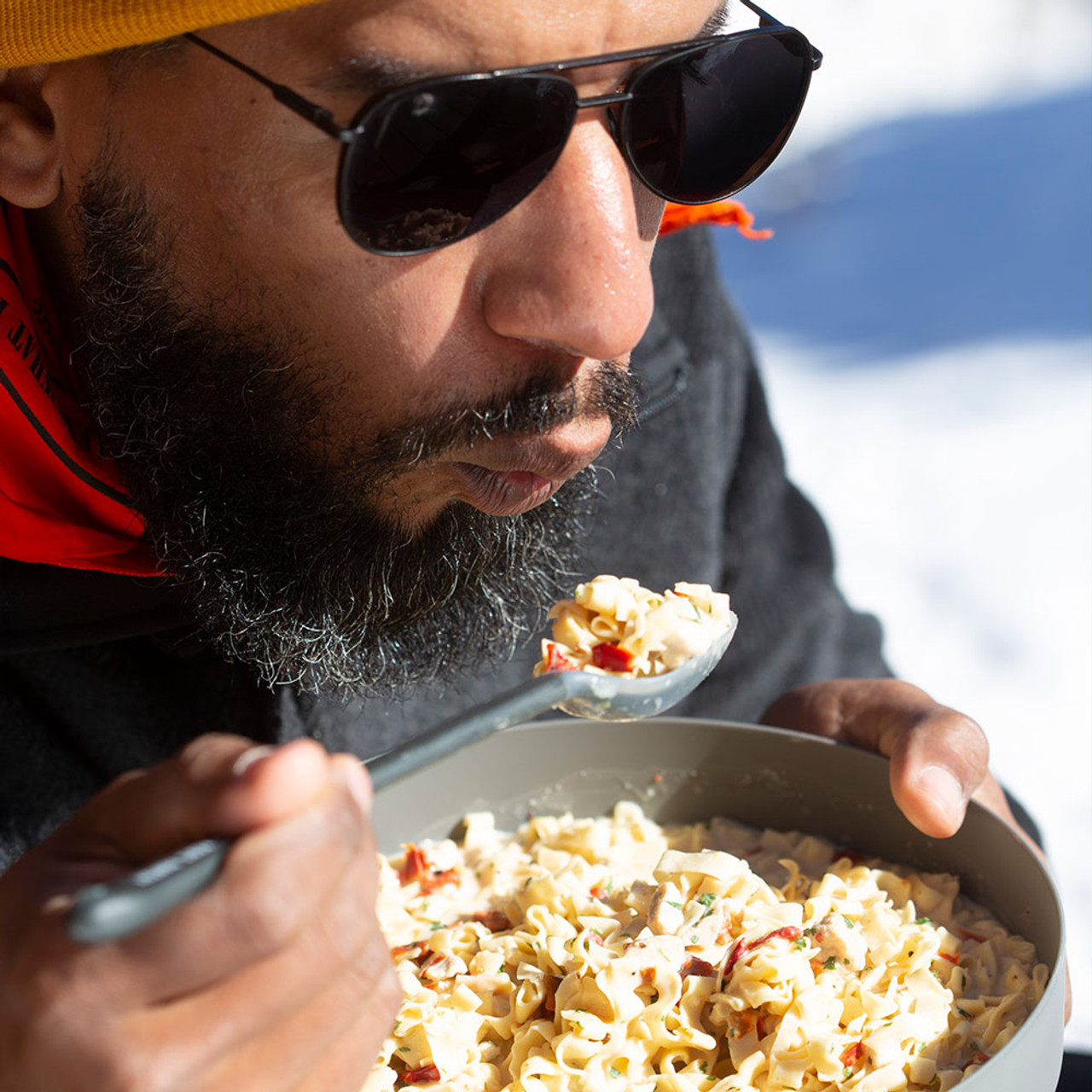 A classic Italian staple reimagined in a gourmet, freeze-dried camping meal version. Our hearty entrée is protein-packed outdoor cuisine meticulously crafted with Belgian egg noodles made just for us, roasted red peppers, all-natural white chicken in a thick and creamy alfredo sauce. It’s a trail-ready meal for foodies.