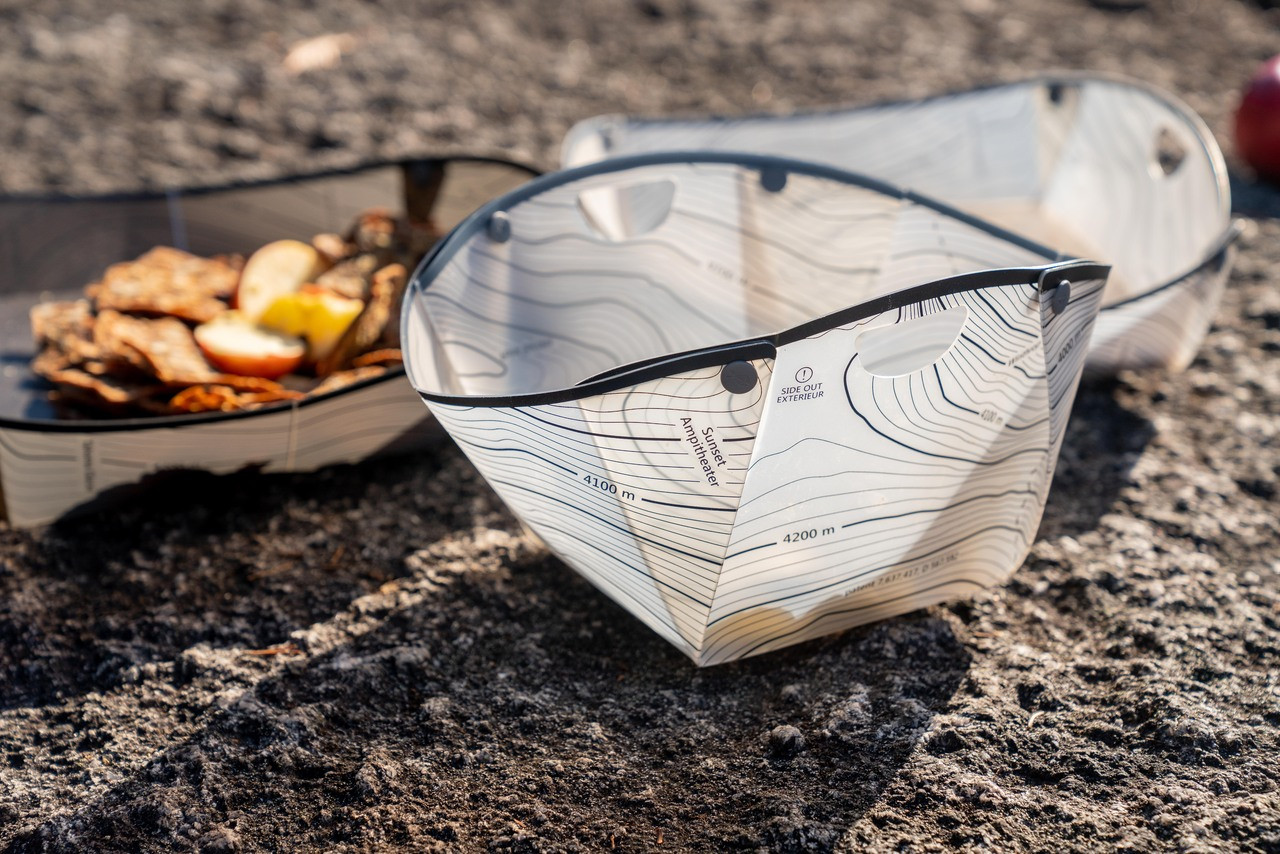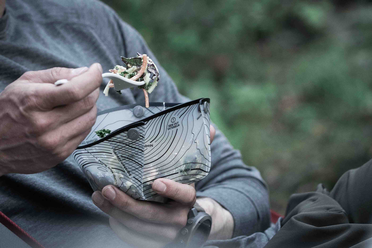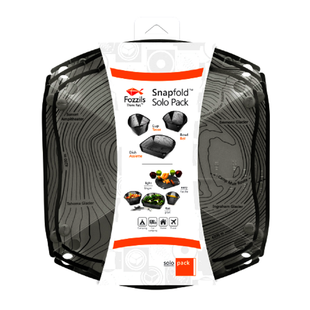The world's lightest pack flat tableware! Complete three piece set (Cup, Bowl, Dish). Fozzils Solo Pack is the tableware of choice for backpacking, travel, biking, hiking, RV, boating, picnics, mountaineering and even at the office or for pets! Save space and weight, fold and store flat. Convenient measuring lines for food prep, easy clean non-stick surface. A durable, reusable alternative to disposables (BPA free).