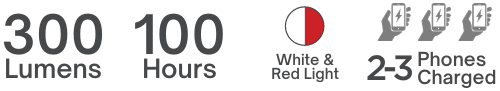 With a maximum brightness of 300 Lumens, the Titan can light your campsite. With 100 hours of runtime, you can depend on it for extended power outages or off-grid expeditions.