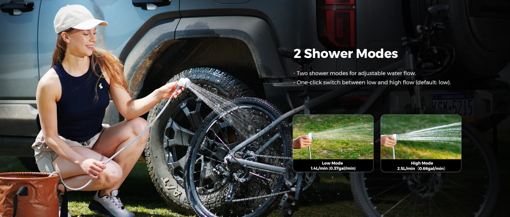 - Two shower modes (low & high) for adjustable water flow (see infographic below for more details)